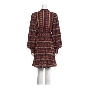 ByTimo Boho Printed Mini Dress Brown-Purple Long Sleeve Pleated Romantic Medium