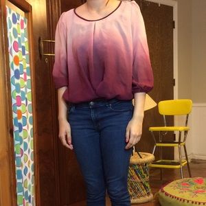 By&by quarter sleeve blouse! Elastic on the bottom and at the end of each sleeve with a lace back. Says size small and fits like a extra small/small🙅🏽🌸