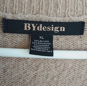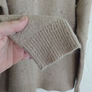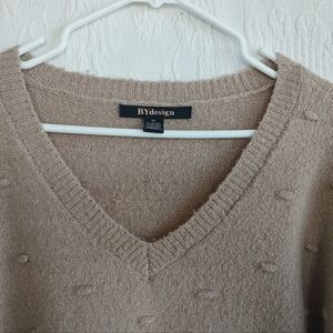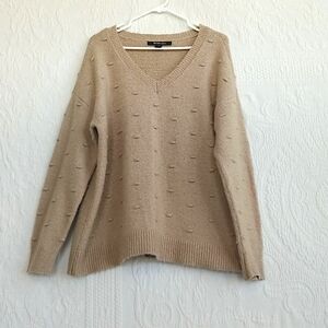 Bydesign Elegant Beige V-Neck Sweater Soft Comfy Polka Dot Textured Long sleeve