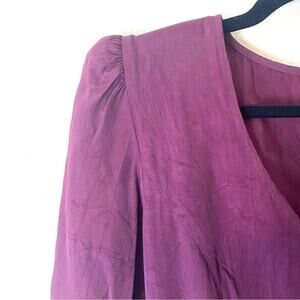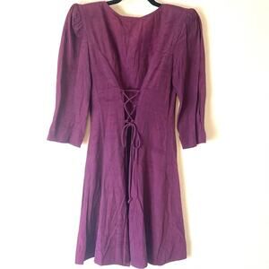 Excellent used condition! Dark purple wine burgundy long sleeved dress. Pearl loop buttons down front with a lace up back. Fit and flare style with a V-neck.