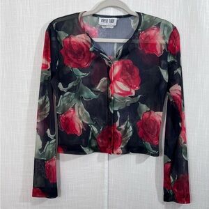 Byer Too! Vintage Y2K 90’s Semi Sheer Button Front Floral Cropped Cardigan Sz M
