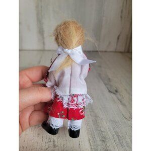 Vintage Byers Choice Carolers Girl Child Standing Red Dress White Apron Red Wagon Christmas Carolers