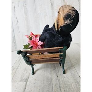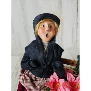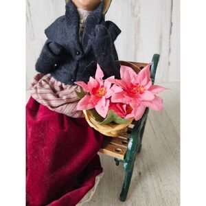 Byers choice Victorian lady basket poinsettia bench 2000 vintage Xmas decor