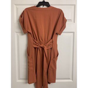 • 3 Button Closure / Wrap/ Belted/ V Neck/ 2 Pockets/Button Tab Sleeve/ Elastic Waist/ Burnt Orange
