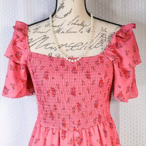 Byinns size M raspberry color floral ruched bodice flutter sleeve dress - NWT