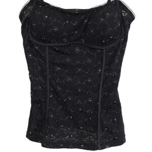 Byline Floral Lace Bustier Size M Black Silver Metallic Feminine Glam Y2K Style