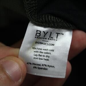 Features a zip fly with double button closure, front and back pockets, and minimalist BYLT logo embroidery on rear