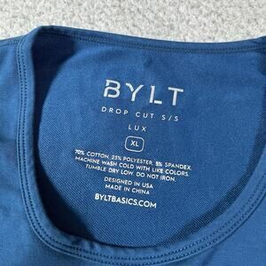 Bylt Shirt Mens XL Blue Drop Cut Lux Short Sleeve Performance Stretch Gym Crew