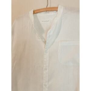 Bylunta White linen button up top. Size small. No fabric tag. Approx measurements length -29in front, 31in back, pit to pit -20.5in. Great condition.