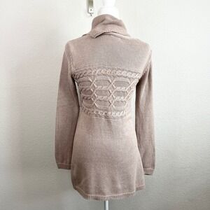 Bylyse Cable Knit Sweater Women's S Tan Camel Hair Mock Neck Knit Tunic