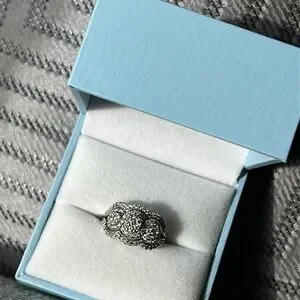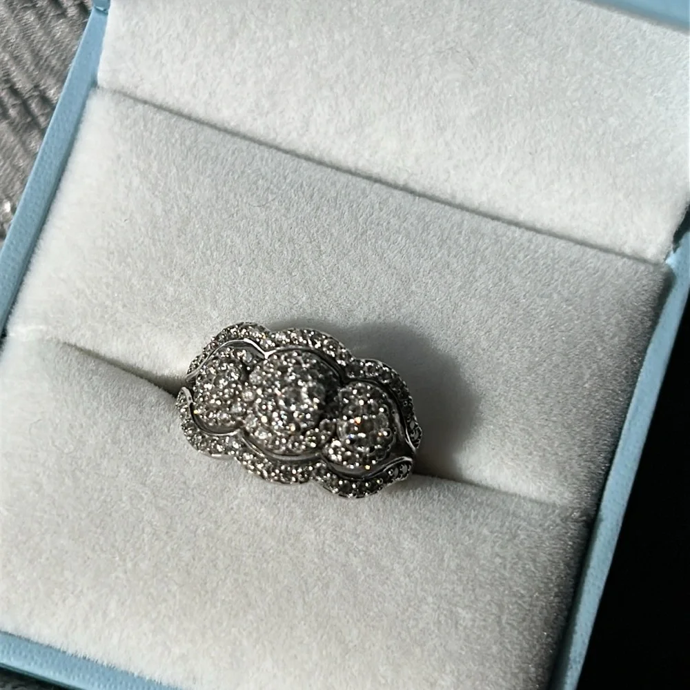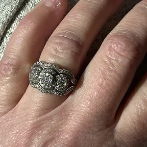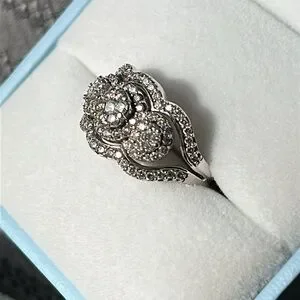 Stunning previously owned triple bypass ring. Absolutely stunning! Solid white 14 kt gold . All diamonds intact. Pics do not do this ring justice. I do not know the Total ct weight. In excellent condition. Size 6.Great as an engagement ring or an anniversary ring. Or wear just because you deserve it! ❤️