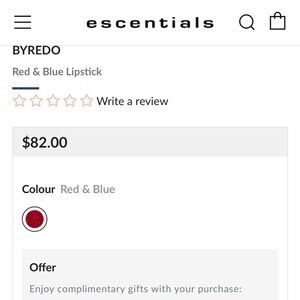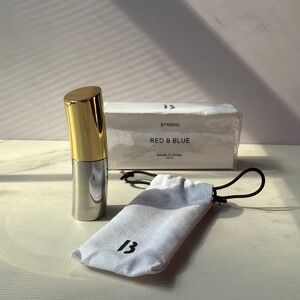 Brand new Byredo “Red & Blue” lipstick. This is the most gorgeous shade of red and works on all skin tones. The case is silver and gold with a super satisfying magnetic click. Comes with Byredo dust bag. The box got a little squished but I will include it on request. More details in the photos.