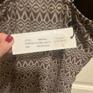 Byron Bay Australia Bathing Swim Suit Tan tribal twist Tummy control Size 14