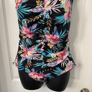 Byron Blue Women's One Piece Swimsuit Blue Floral Patterned Swimming Size 12