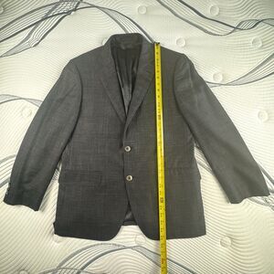 Byron British Style Wool Blazer Men 40R Black Modern 2 Button