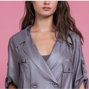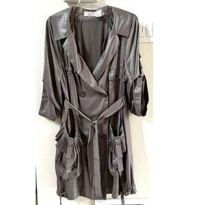 Byron Lars Beauty Mark Featherweight Topper Trench Coat in Grey 10 NWOT