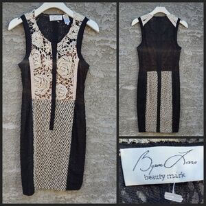 A beautifully detailed pencil dress from Byron Lars. A tiny bit of stretch, form fitting. Polyester, cotton, acrylic; polyester pencil silhouette. . from Anthropologie.