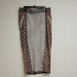 Byron Lars for Anthropologie plus maxi skirt. lined through thighs. pockets. 89% polyester, 11% spandex, ankle length. new with tags. sides are sheer. 36" waist (SK-031)