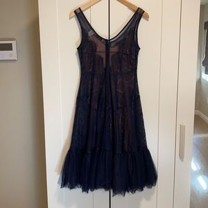 Byron Lars sleeveless tulle dress with slip included, front clip for optional ruched look, zipper back, fitted. Beautiful dress.