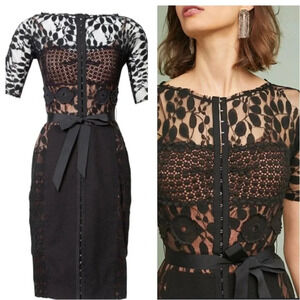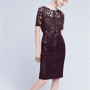 Beguile by Byron Lars Anthropologie Carissima Sheath Lace Black Dress Size 2 Petite, belt not included just add your own ribbon