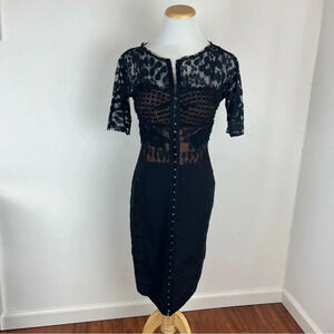 Byron Lars Anthropologie Carissima Sheath Lace Black Dress Size 2 Petite