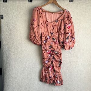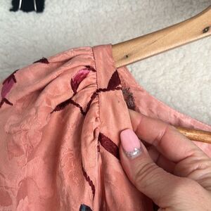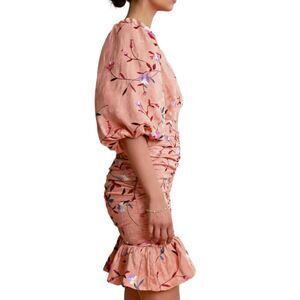 Bytimo Dress Womens XXS Pink Ruched Floral Embroidered Jacquard