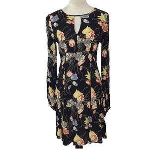 Bytimo Trailing Flowers Black Floral Long Sleeve Dress Size XS NEW