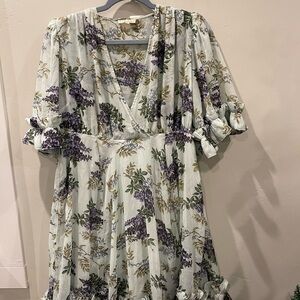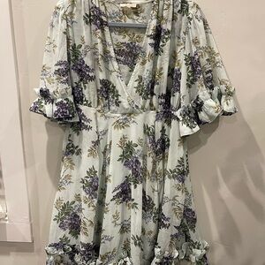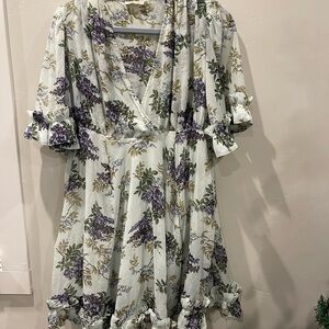 Bytimo Women's Multicolor Floral Ruffle Trim Belt Mini Wrap Dress Size Medium