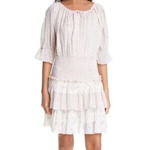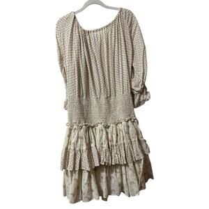 Bytimo bohemian mini floral tan smocked tiered ruffle dress