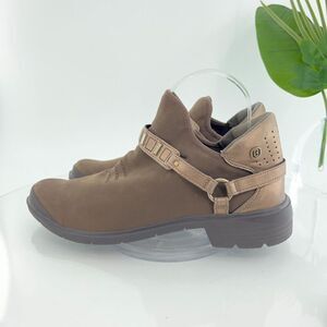 Bzees Boots Womens 9 Barista Harness Strap Low Bootie Brown Faux Leather Cowboy