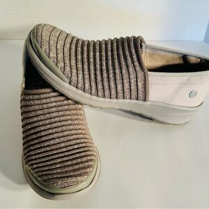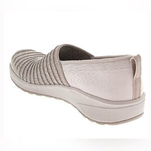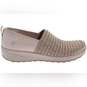 Experience unparalleled comfort with Bzees Cream Flats, featuring a quilted ribbed design and a cushioned sole for all-day wear. These slip-on shoes offer a minimalist, modern look with a slightly raised heel and a rounded toe box, perfect for casual outings. The soft, flexible material ensures a snug fit, making them an ideal choice for those seeking style and comfort.