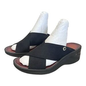 Bzees | Desire Black Slip On Stretch Slides Sandals Wedges Open Toe Size 9