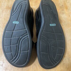 Bzees Desire Sandals Women's 9W Black Comfort Elastic Cross Strap Wedge Slide