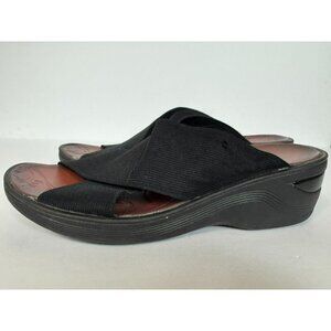 Bzees Desire Sandals Women's Sz 9 Black Comfort Elastic Cross Strap Wedge Slide