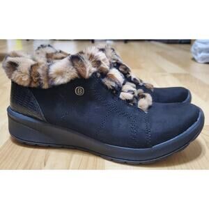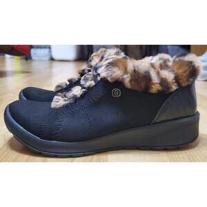 Bzees Golly Black Leopard Fur Lined Slip On Ankle Boots Womens Sz 6.5W Shoes NEW