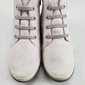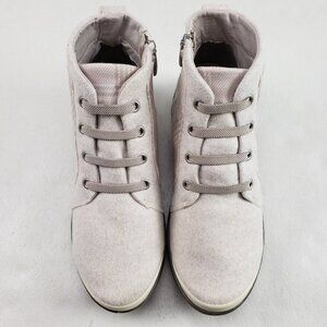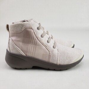 Bzees Kick Back Boots Taupe Plaid Womens 7 Side Zip Comfort Wedge Ankle Booties