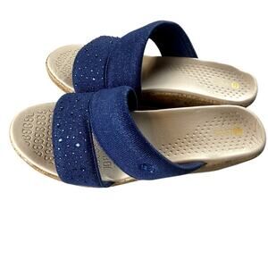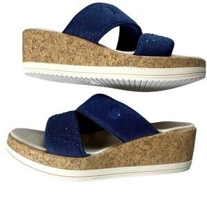 Bzees Resort Wedge Sandals Navy Rhinestone Double Strap Comfort 10W