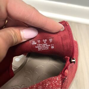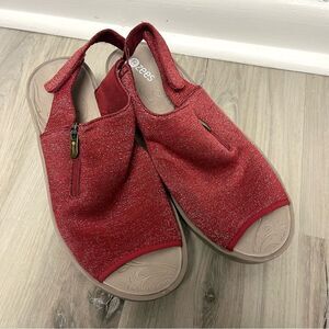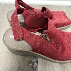 Bzees Sandals Women’s 10W Delicious Red and Tan Wedge Adjustable Strap