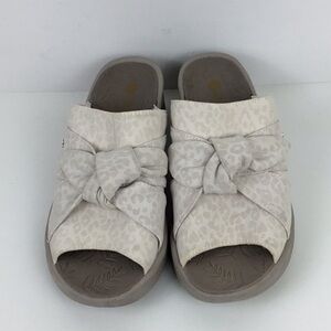 Bzees Wedge Smile Sandals Beige Animal Print Size 10 Slides Knot Front