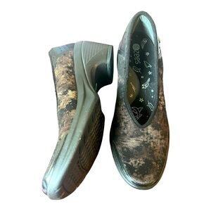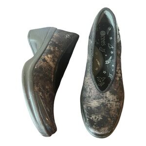 Bzees Willow Slip On Womens Mid Heel Pumps Comfort Black Gold Wedge Size 8