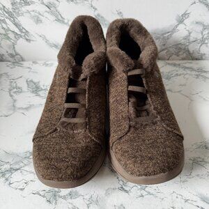 Bzees Women 10 Slip On Shoe Comfort Casual Walking Brown Stretch Faux Fur Soft