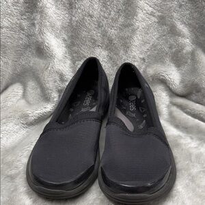 Sleek black slip-on flats. Lightweight and easy to wear. Ideal for everyday comfort. In well loved condition.