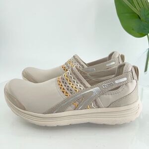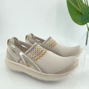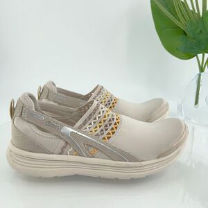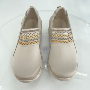 Bzees Women Sunny Slip On Size 7.5 Sport Flat Shoe Sneaker Beige Fabric Stretch
