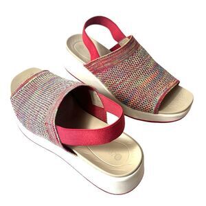 Bzees Women 9M Multicolor Fabric Comfort Casual Sandal Sling Back Wedge Open Toe