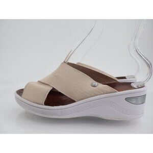 Bzees Women's Desire Sandals 8 Wedge Heel Slip On Beige Textile Casual Comfy