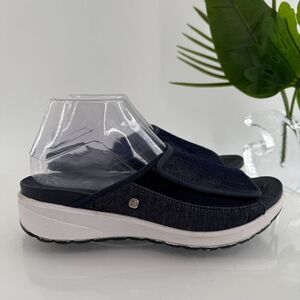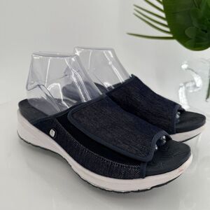 Bzees Women's Galaxy Sandals 8.5 Wedge Heel Slip On Blue Textile Casual Comfy