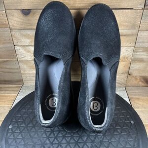 Bzees Womens Size 6.5 Free Spirit Crackled Black Slip In Wedge Heel Shoes