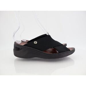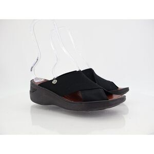 Bzees Women's Desire Sandals 9 Wedge Heel Slip On Black Textile Casual Comfy