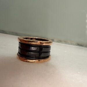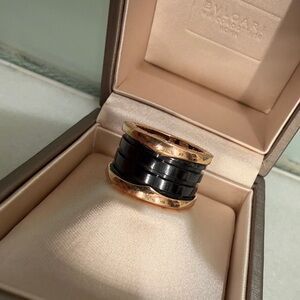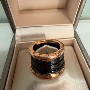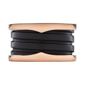 A true icon since 1999, B.zero1 defies convention and trends with its signature blend of Roman inspiration, industrial design and state-of-the art craftsmanship. Crafted in 18 kt rose gold, the four-band ring with black ceramic spiral channels the timeless aesthetics of Roman architecture, with an unmistakable, avant-garde identity that stands a powerful expression of Bvlgari’s creative vision and relentless drive for innovation.