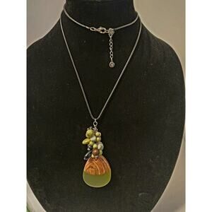 C 1946 Peridot Pendant with Yellow Turquoise Charms on Black Rope Necklace